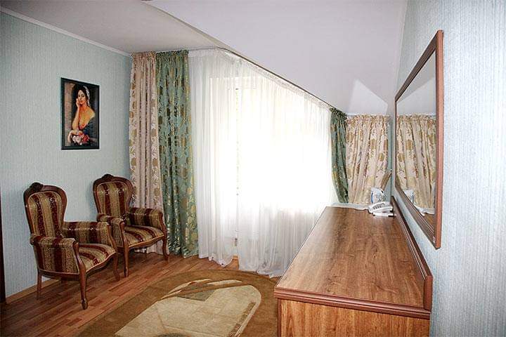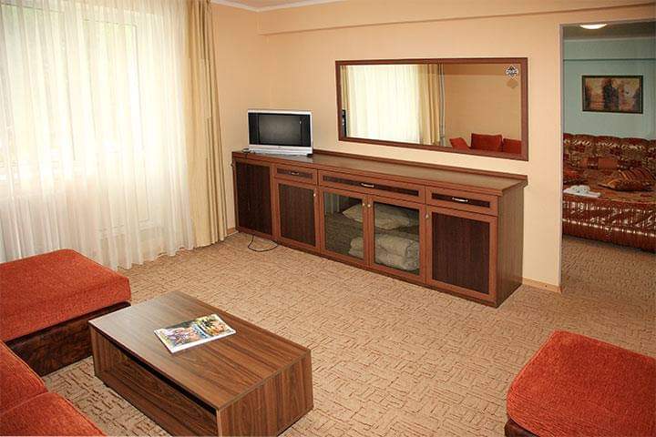 Hotelul dispune de 49 de camere confortabile, mobilate, fiecare cameră este complet echipată, are balcon și baie proprie, TV, aer condiționat, frigider, uscător de păr, telefon, internet prin conexiune Wi-Fi și prin cablu. Hotelul dispune de un cort, care este foarte confortabil, dotat cu canapele din piele și mese.